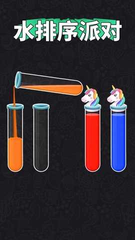 水排序派对是一款富有挑战性的解谜、休闲和益智游戏。玩家需要注意的是只有相同颜色的液体才可以互相倾倒入试管内,最终目标是确保每个试管都装满同一种颜色的液体,才能成功闯关。