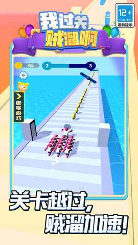 我过关贼溜啊是一款经典的休闲益智闯关游戏,充满了刺激和挑战。玩家需要按照规则进行益智冒险闯关,操控小人队伍穿越各种层层障碍,最终抵达终点。游戏的玩法非常简单,只需轻触屏幕来控制小人的速度,让他在高速闯关中灵活躲避障碍物。