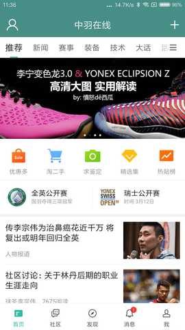 3. 专业的器材讨论中羽在线提供一个专业的器材交流平台,用户可以在这里讨论各种羽毛球装备的使用心得,分享购买建议,帮助彼此选择合适的器材。
