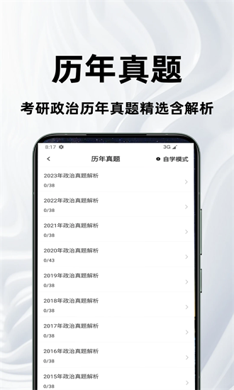 历年真题库:收录近十年的考研政治真题,考生可以随时进行模拟考试,增强应试能力。