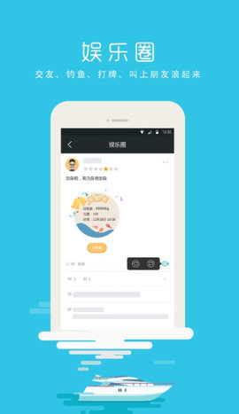 1、用户可以在娱乐圈中关注和分享生活点滴,钓鱼、网鱼、养鱼、打牌,和朋友们一起玩游戏。