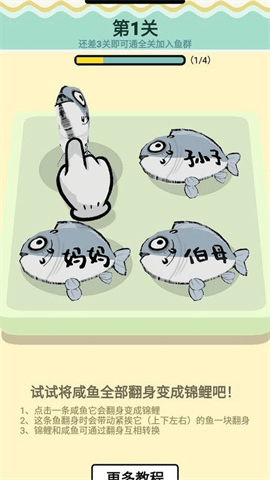 2、智力与技巧结合:玩家需要运用智慧和计算能力,合理判断咸鱼翻身的方向和角度,才能顺利通过各个关卡。