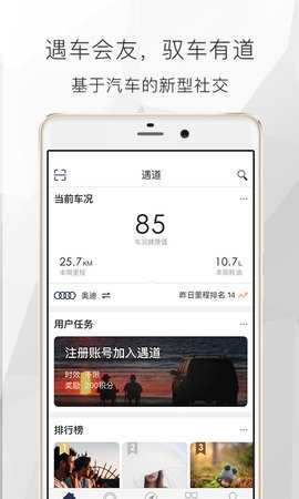 遇道是一款专为高端汽车品牌车主设计的生活娱乐交友软件。用户通过遇道app可以实时监测车辆状况,查询违章信息,获取定期保养提醒,同时也能与同城或同一品牌车系的车友建立联系,加入车友俱乐部,分享出行生活的乐趣。目前,遇道已经聚集了超过20个汽车品牌,300多个车系,数百万名车主共同参与。