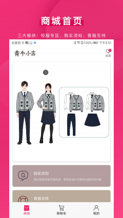 青牛小店是一款专为学生打造的校服购买平台,为学生提供便捷的校服选购服务。根据不同的学校、年级、班级和性别,快速找到所需的校服,并进行在线购买。购买后,用户能够轻松查看自己的订单信息以及物流状态,享受优质的售后服务。青牛小店还提供在线客服功能,帮助用户解决在购物过程中遇到的各种问题。