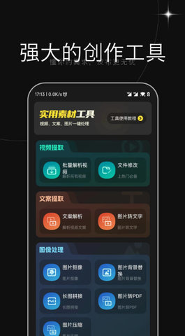 3、创意激发工具:除了素材,天天素材还提供了一些实用的小工具,帮助用户进行创意发想,提高创作效率。