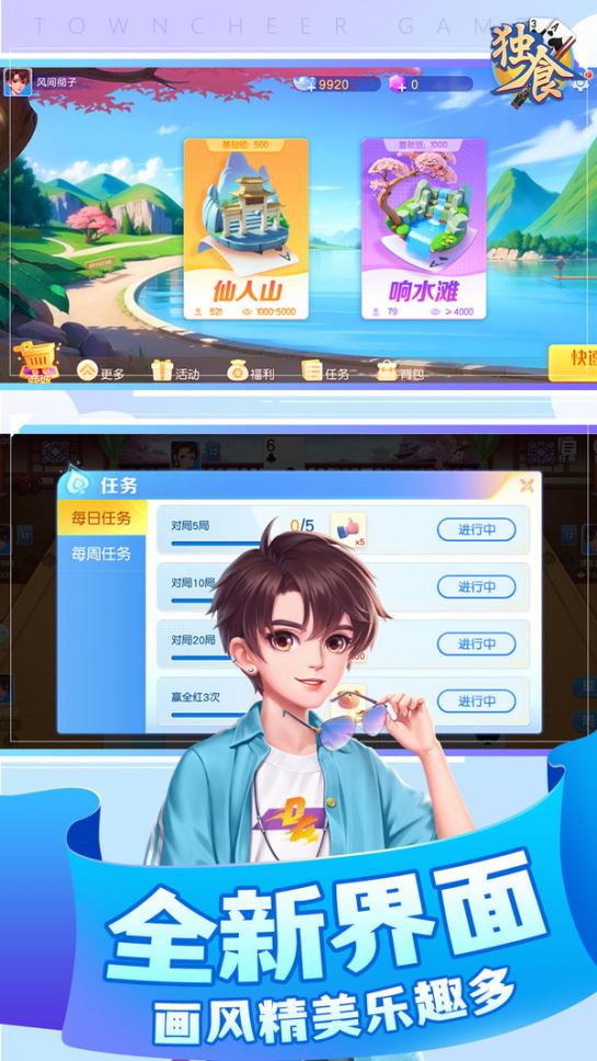 同城游独食是一款融合了地道两广规则的扑克游戏,为提供快速而真实的对战体验。游戏以其独特的玩法和高强度的竞技性而受到广泛欢迎。游戏支持四人参与,通过抓牌的方式进行对战,玩法灵活多变,既可进行二打二的团队合作,也可以一打三的个人挑战,适合不同风格的,带来丰富的娱乐体验。