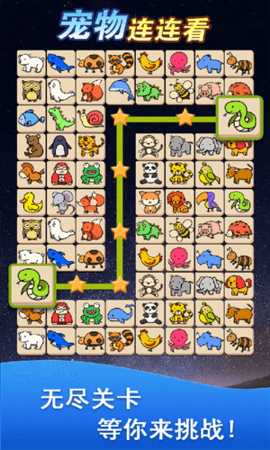 1、启动游戏后,玩家将看到一个由各种可爱小动物组成的棋盘,目标是连接相同的小动物并将其消除。