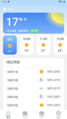 1、未来十五天天气查询:随时查询未来十五天的天气情况,方便做好出行计划。