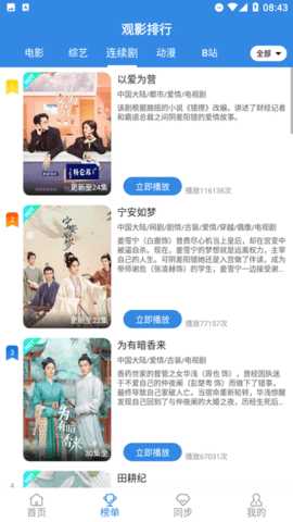 2、详细分类:应用提供了多种分类方式,根据年份、地区、排名等条件查找电影和电视剧,使得寻找自己感兴趣的作品更加便捷。