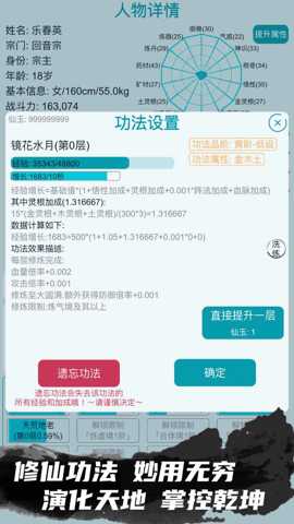 3、自由修炼与资源管理:玩家可以自由修炼功法,炼丹炼器,并通过灵气和道具的合理使用来提升实力,培养策略思维。