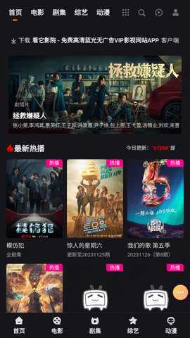 1、下载并安装:首先在您的设备上下载看他影院应用并进行安装,打开应用后进入首页。