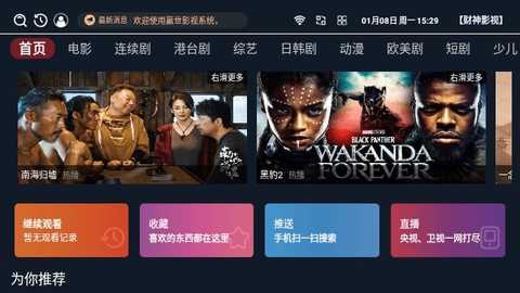1、海量影视资源:财神影视TV版拥有丰富的影视资源库,轻松找到各类影片,包括电视剧、电影和综艺节目,满足不同观影需求。